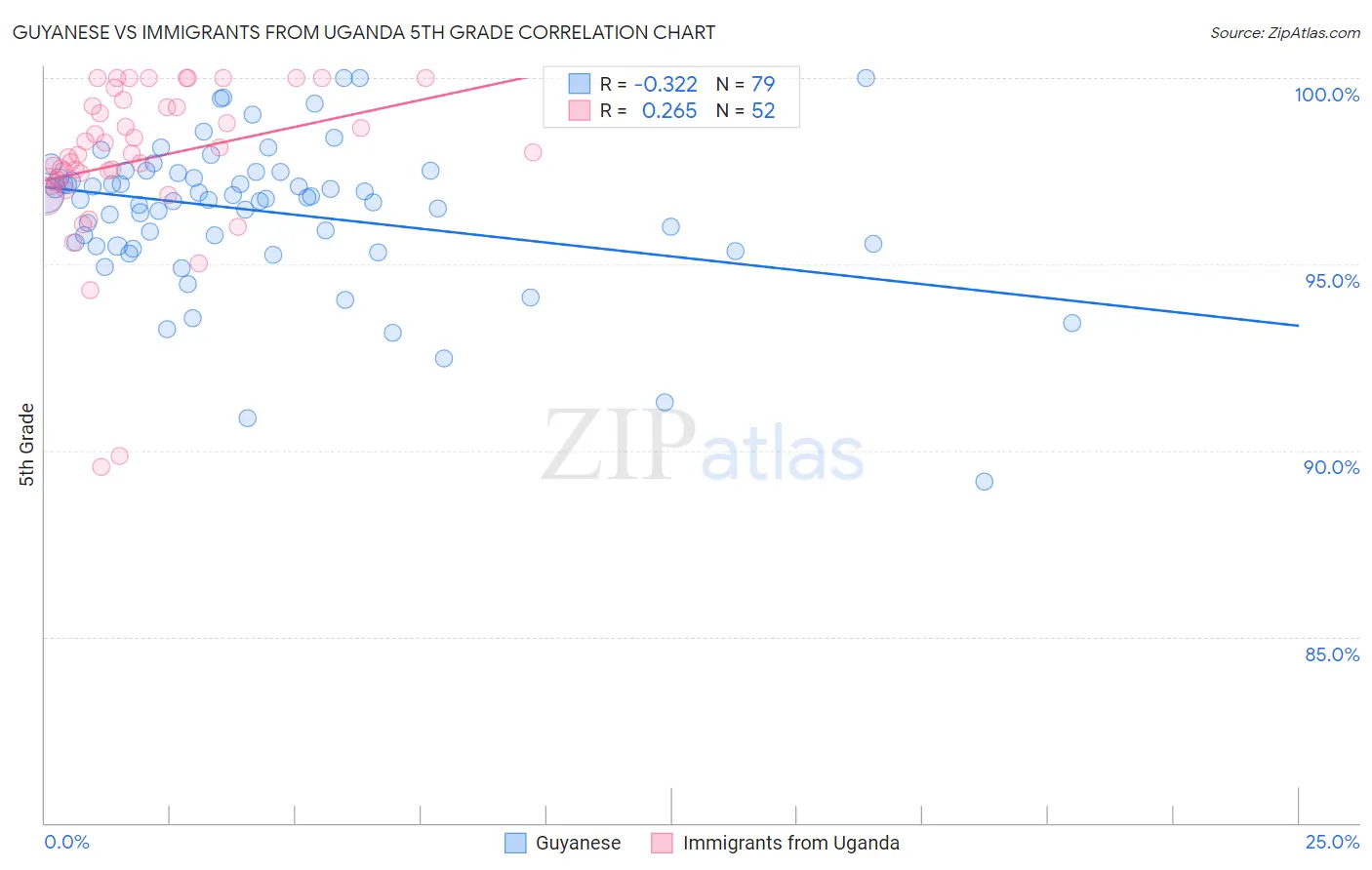 Guyanese vs Immigrants from Uganda 5th Grade Correlation Chart