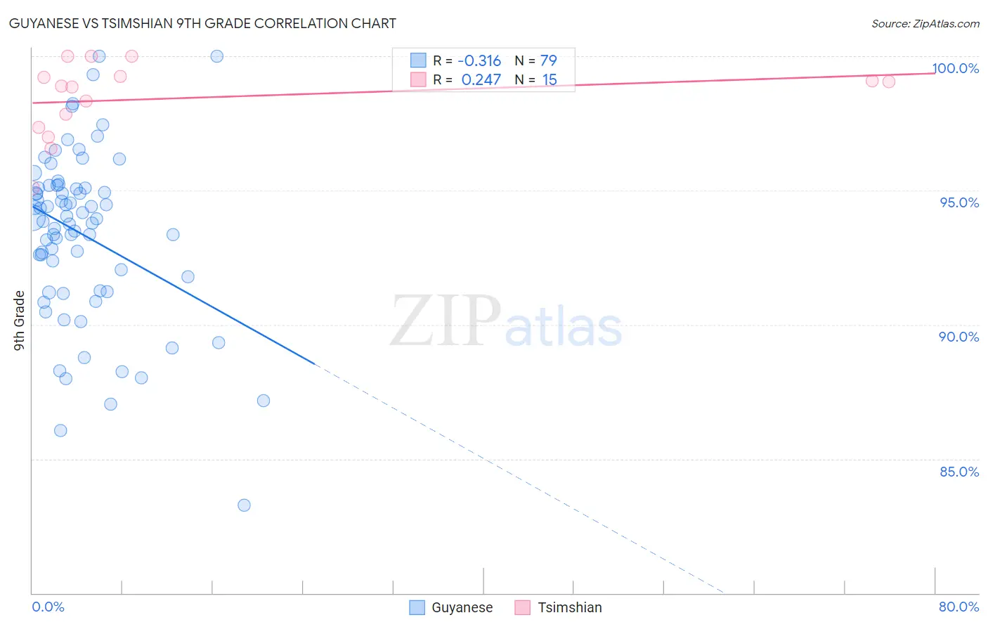 Guyanese vs Tsimshian 9th Grade Correlation Chart