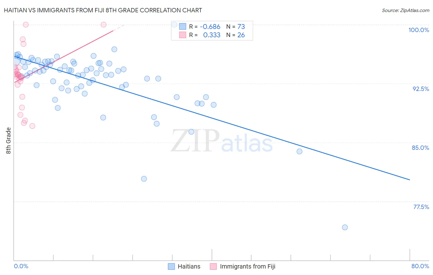 Haitian vs Immigrants from Fiji 8th Grade Correlation Chart