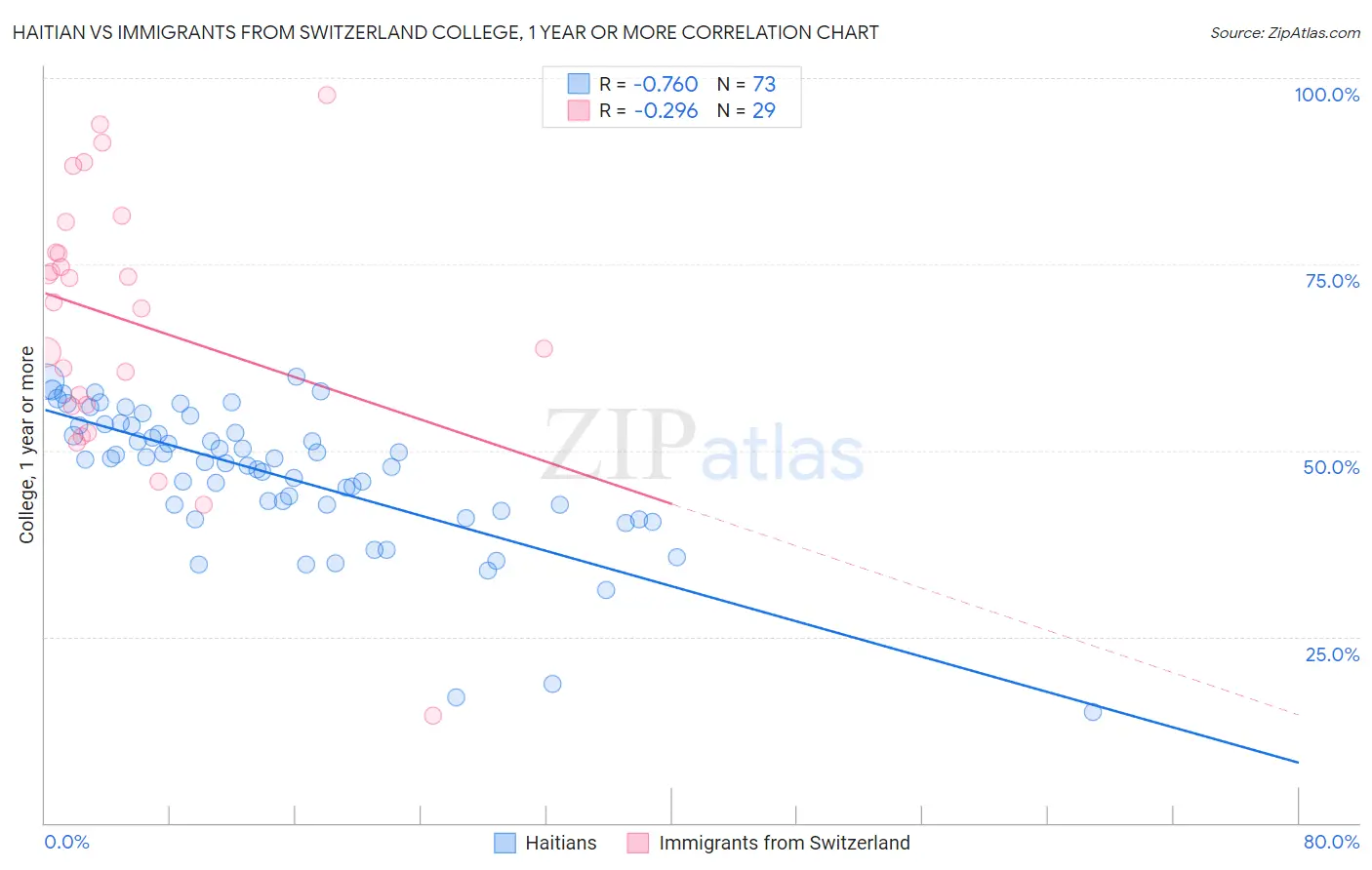 Haitian vs Immigrants from Switzerland College, 1 year or more Correlation Chart
