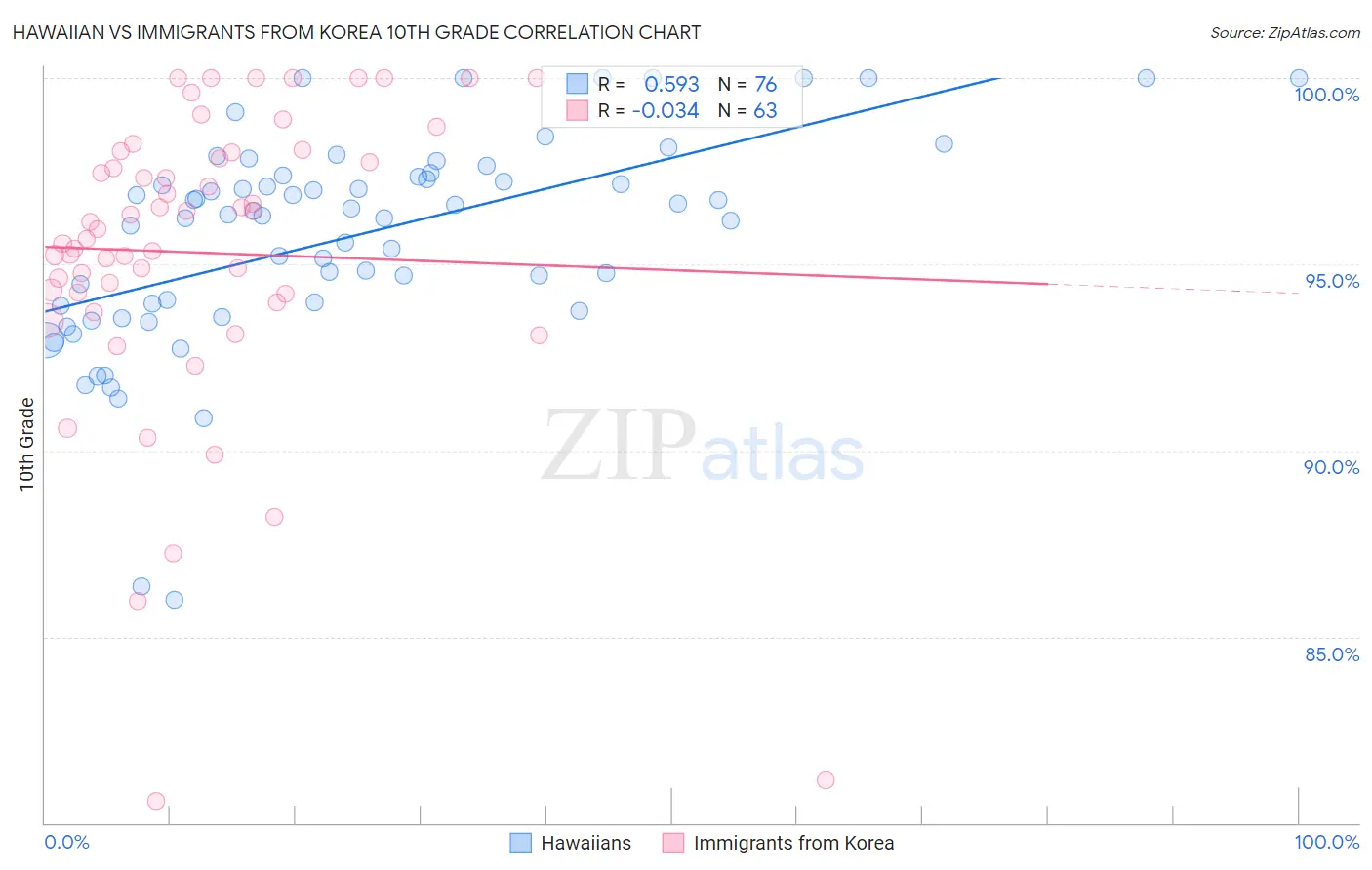 Hawaiian vs Immigrants from Korea 10th Grade Correlation Chart