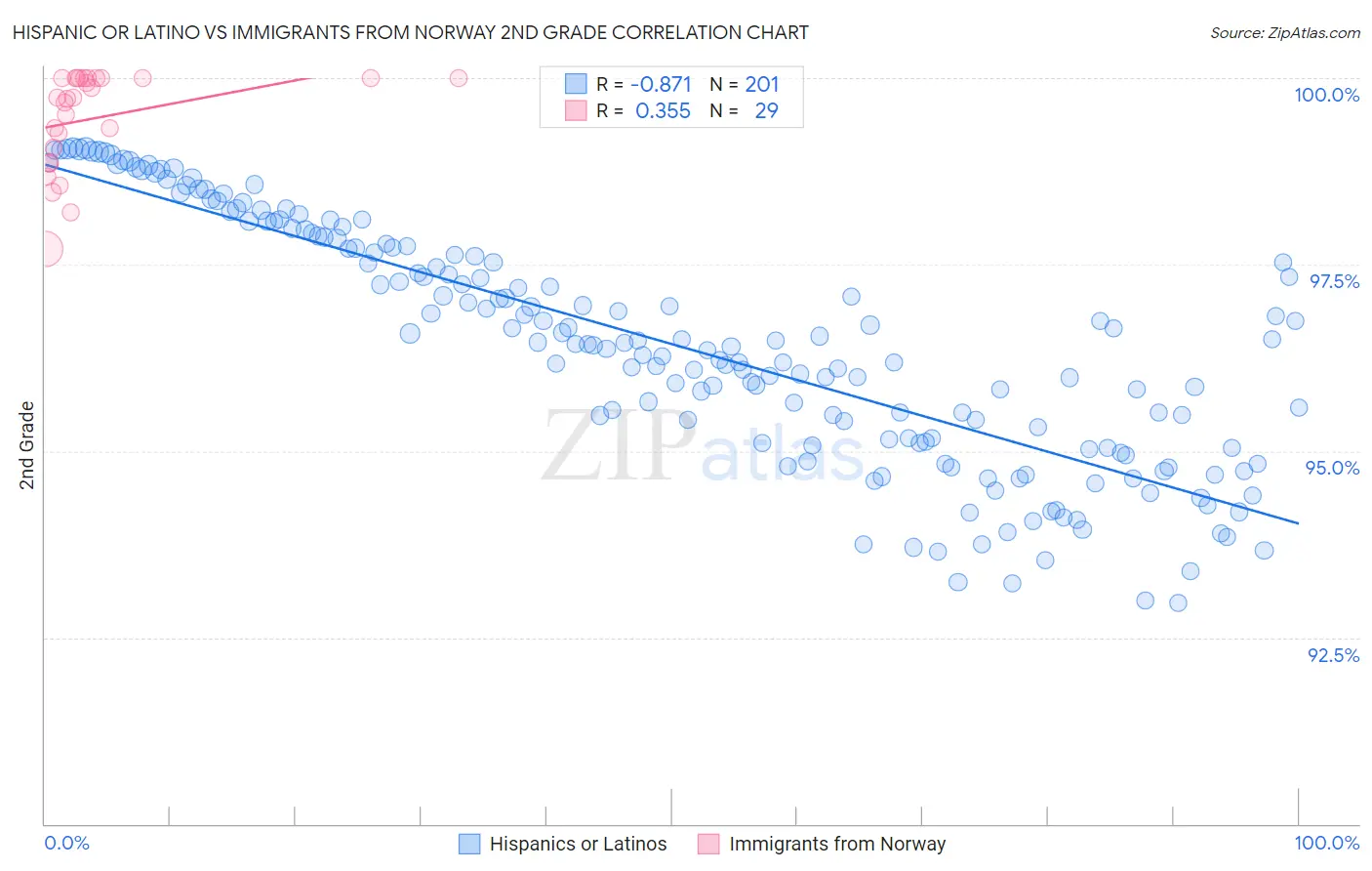Hispanic or Latino vs Immigrants from Norway 2nd Grade Correlation Chart