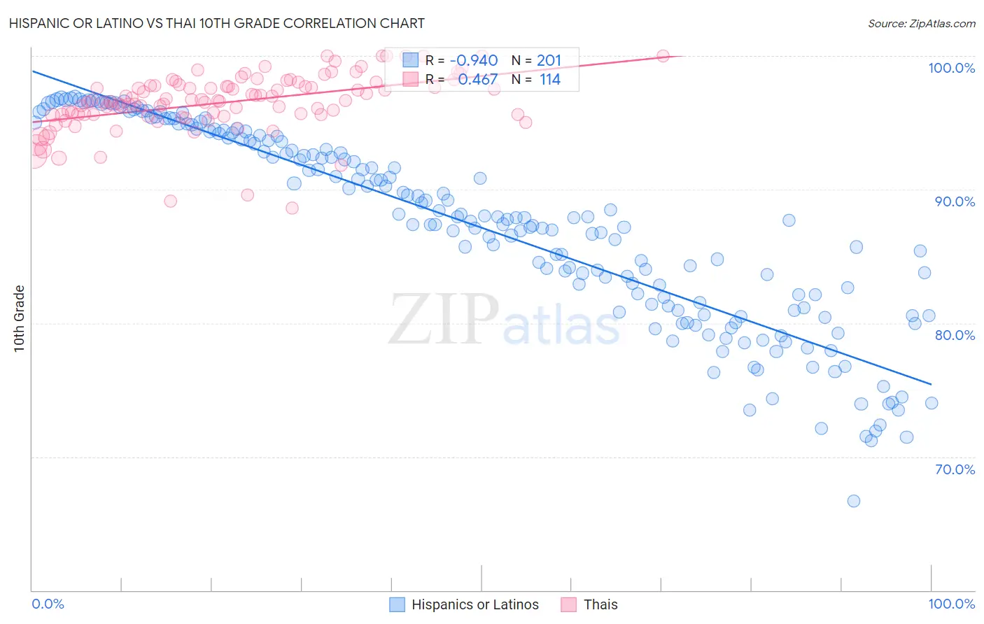 Hispanic or Latino vs Thai 10th Grade Correlation Chart