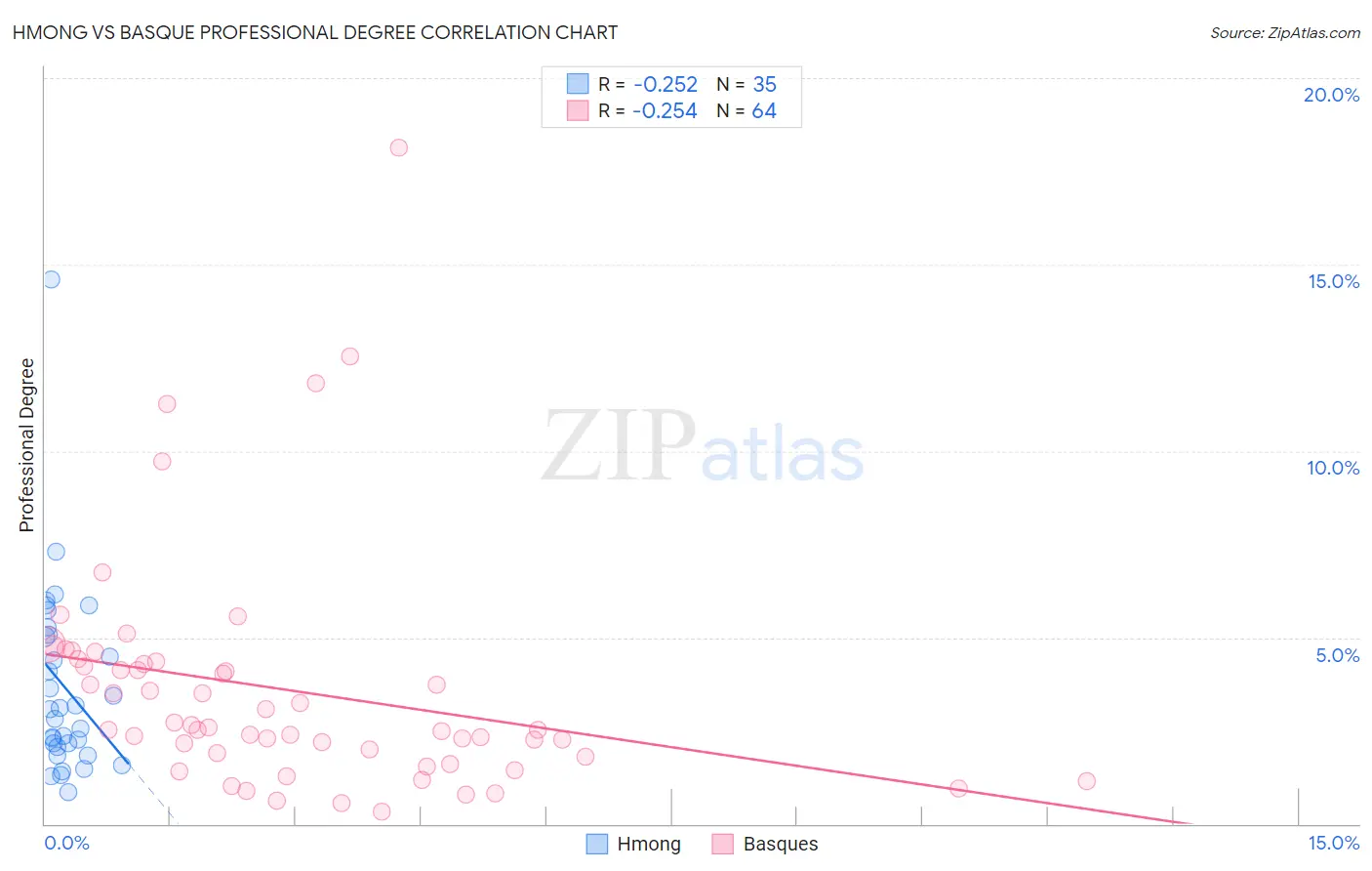 Hmong vs Basque Professional Degree Correlation Chart