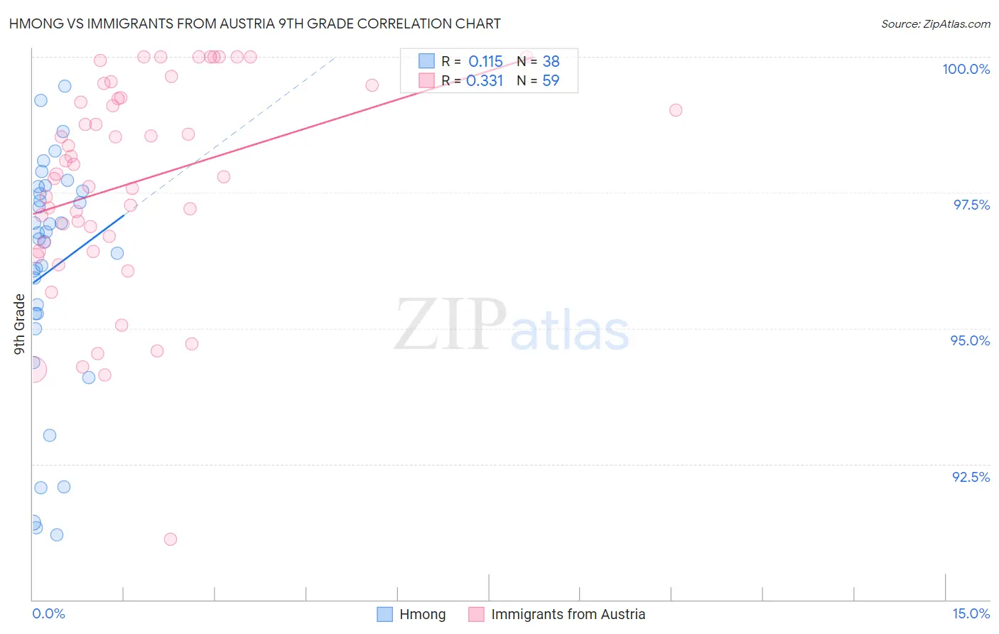 Hmong vs Immigrants from Austria 9th Grade Correlation Chart