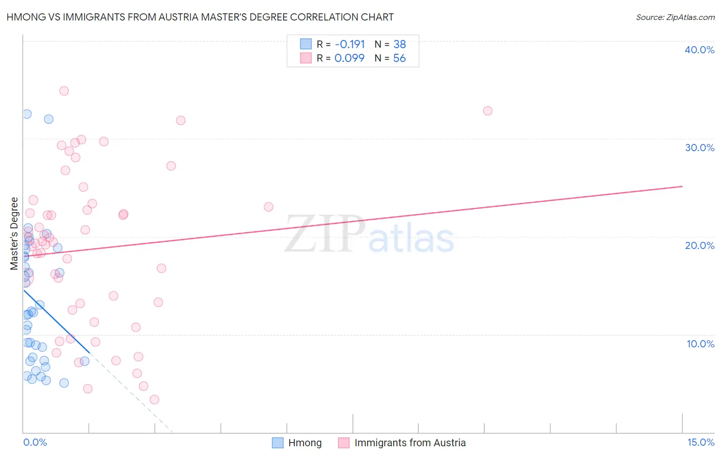 Hmong vs Immigrants from Austria Master's Degree Correlation Chart