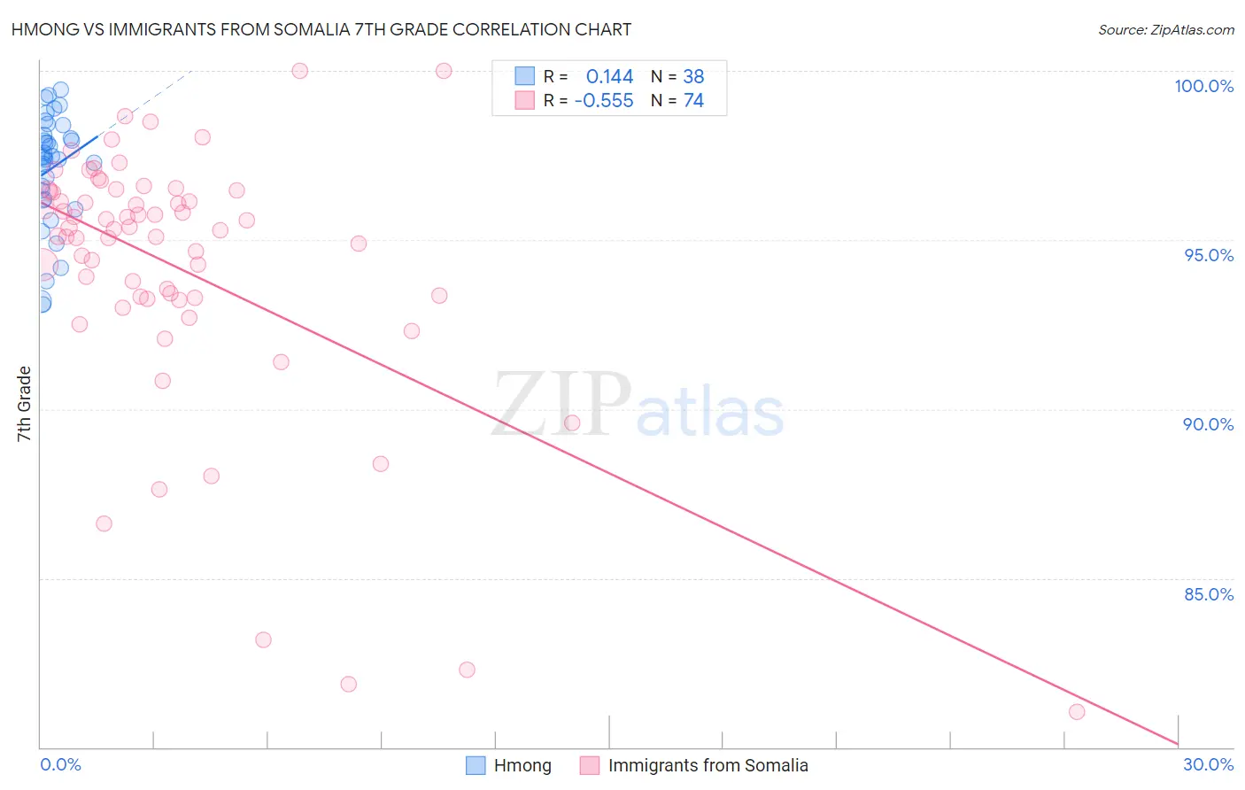 Hmong vs Immigrants from Somalia 7th Grade Correlation Chart