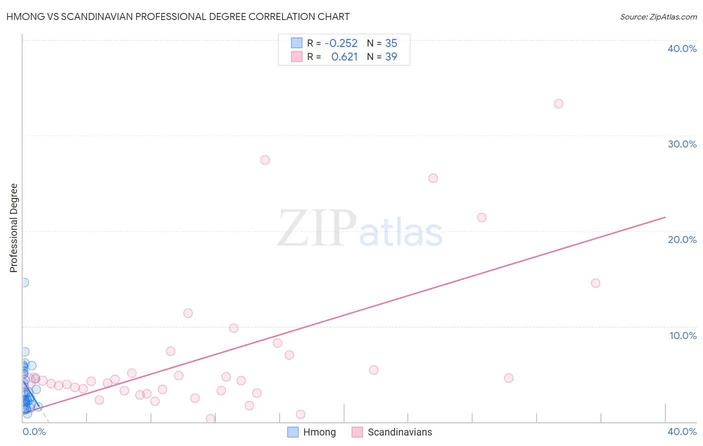 Hmong vs Scandinavian Professional Degree Correlation Chart