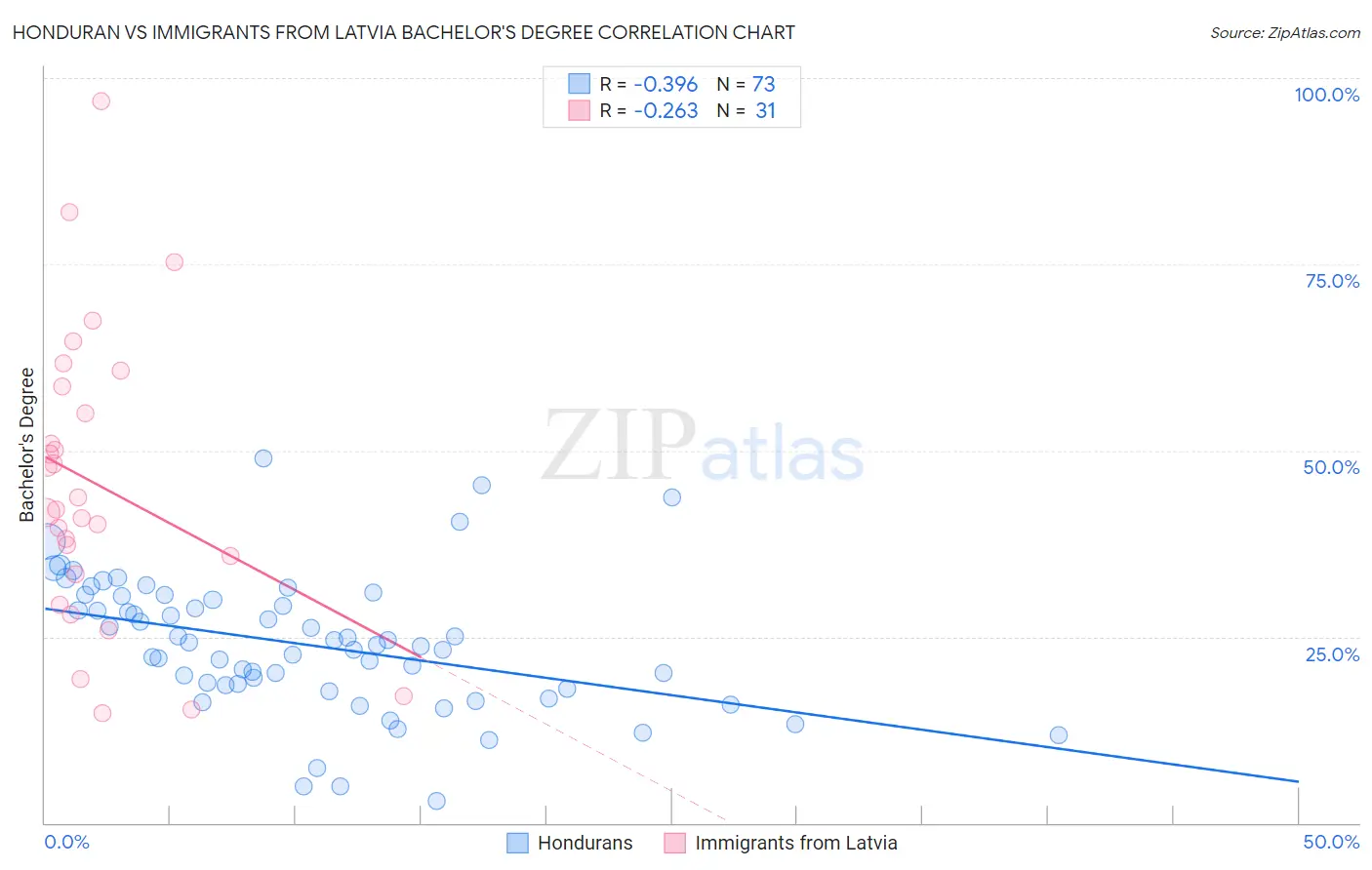 Honduran vs Immigrants from Latvia Bachelor's Degree Correlation Chart