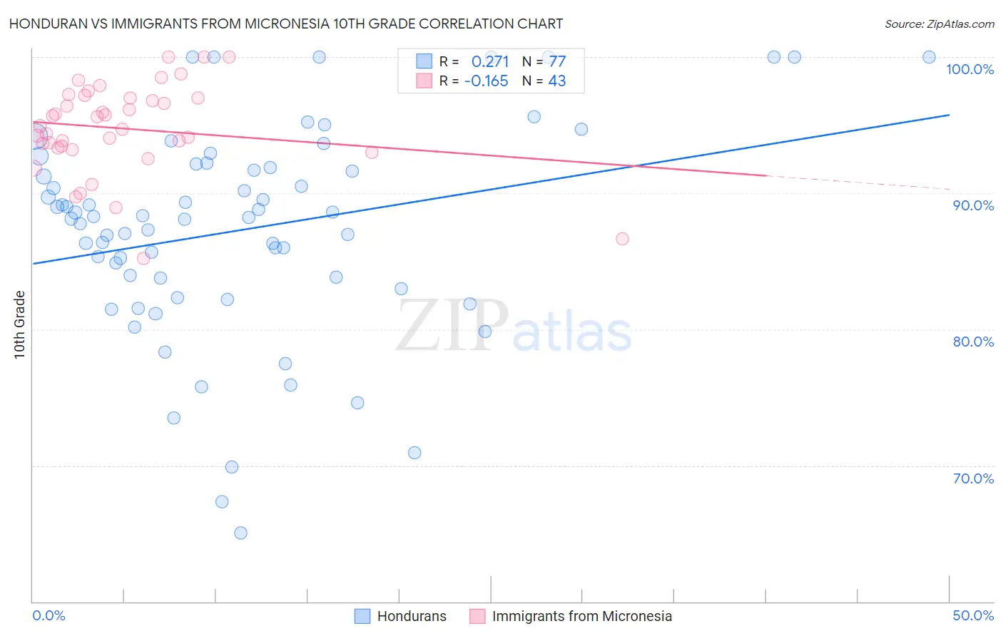 Honduran vs Immigrants from Micronesia 10th Grade Correlation Chart