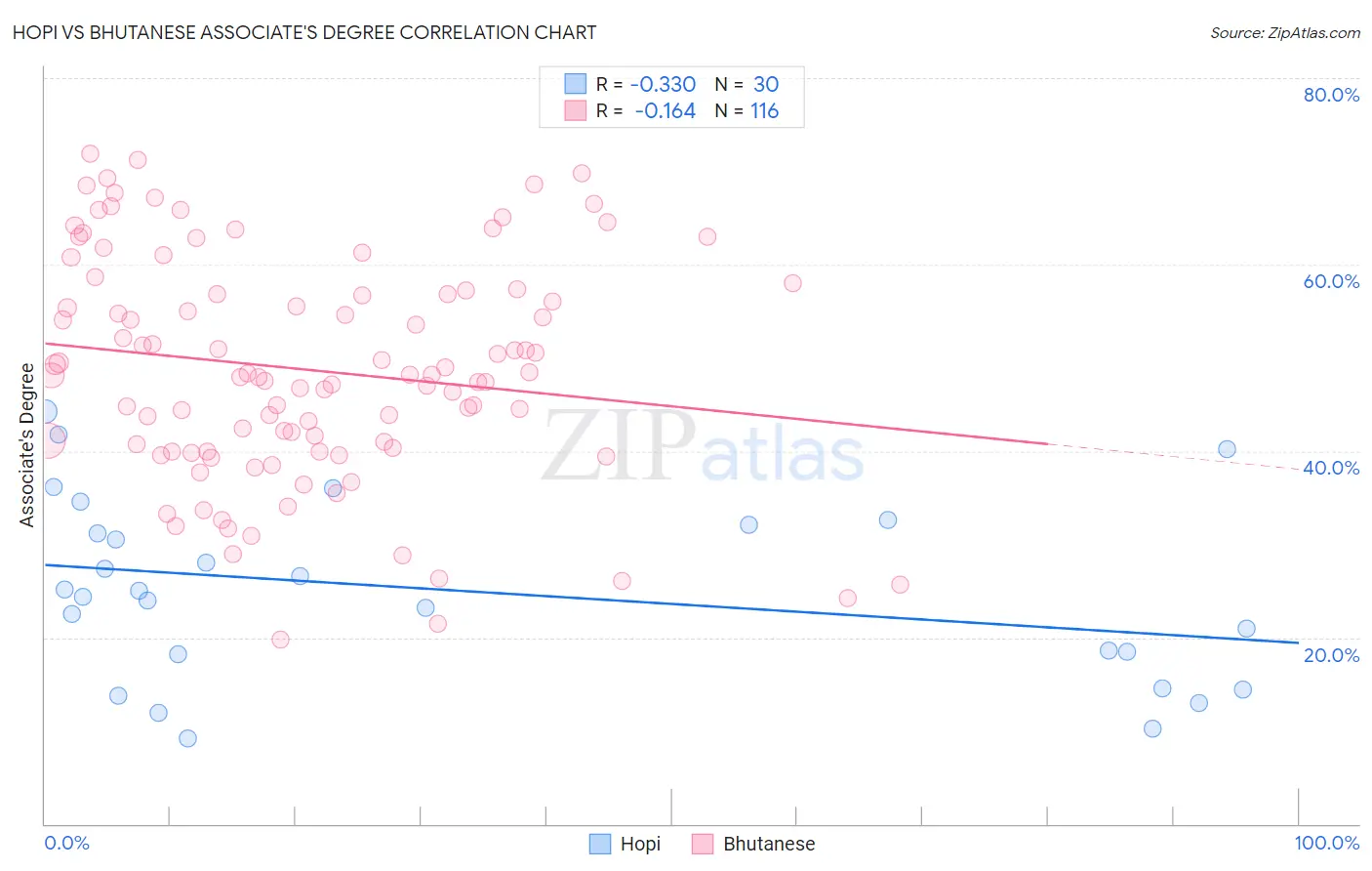 Hopi vs Bhutanese Associate's Degree Correlation Chart