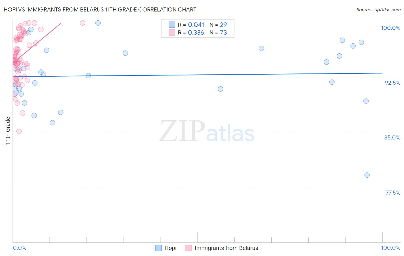 Hopi vs Immigrants from Belarus 11th Grade Correlation Chart