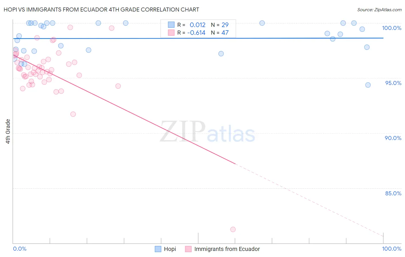 Hopi vs Immigrants from Ecuador 4th Grade Correlation Chart