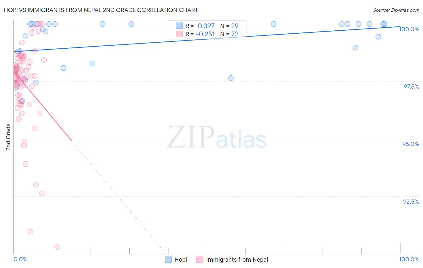Hopi vs Immigrants from Nepal 2nd Grade Correlation Chart