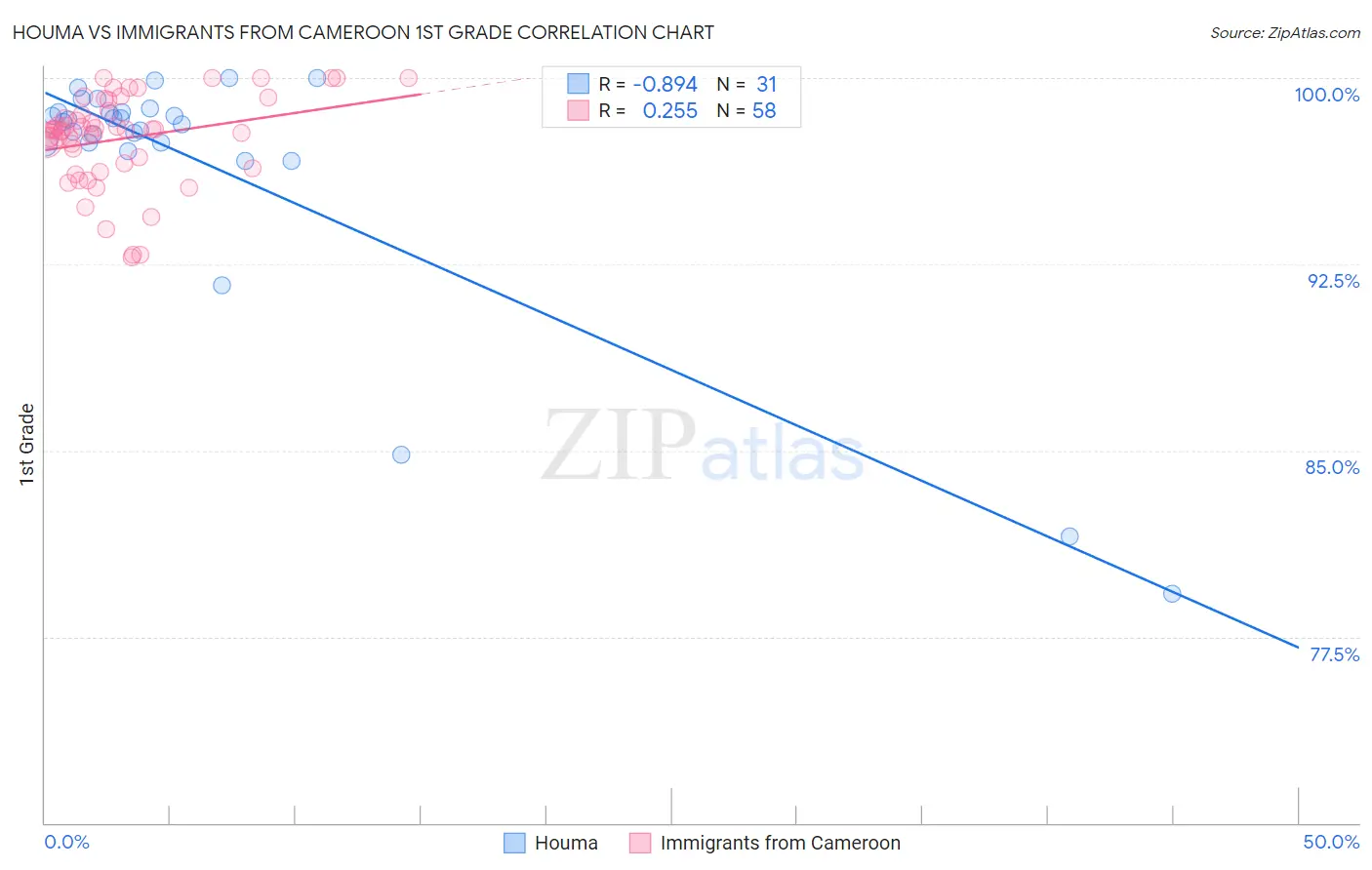 Houma vs Immigrants from Cameroon 1st Grade Correlation Chart