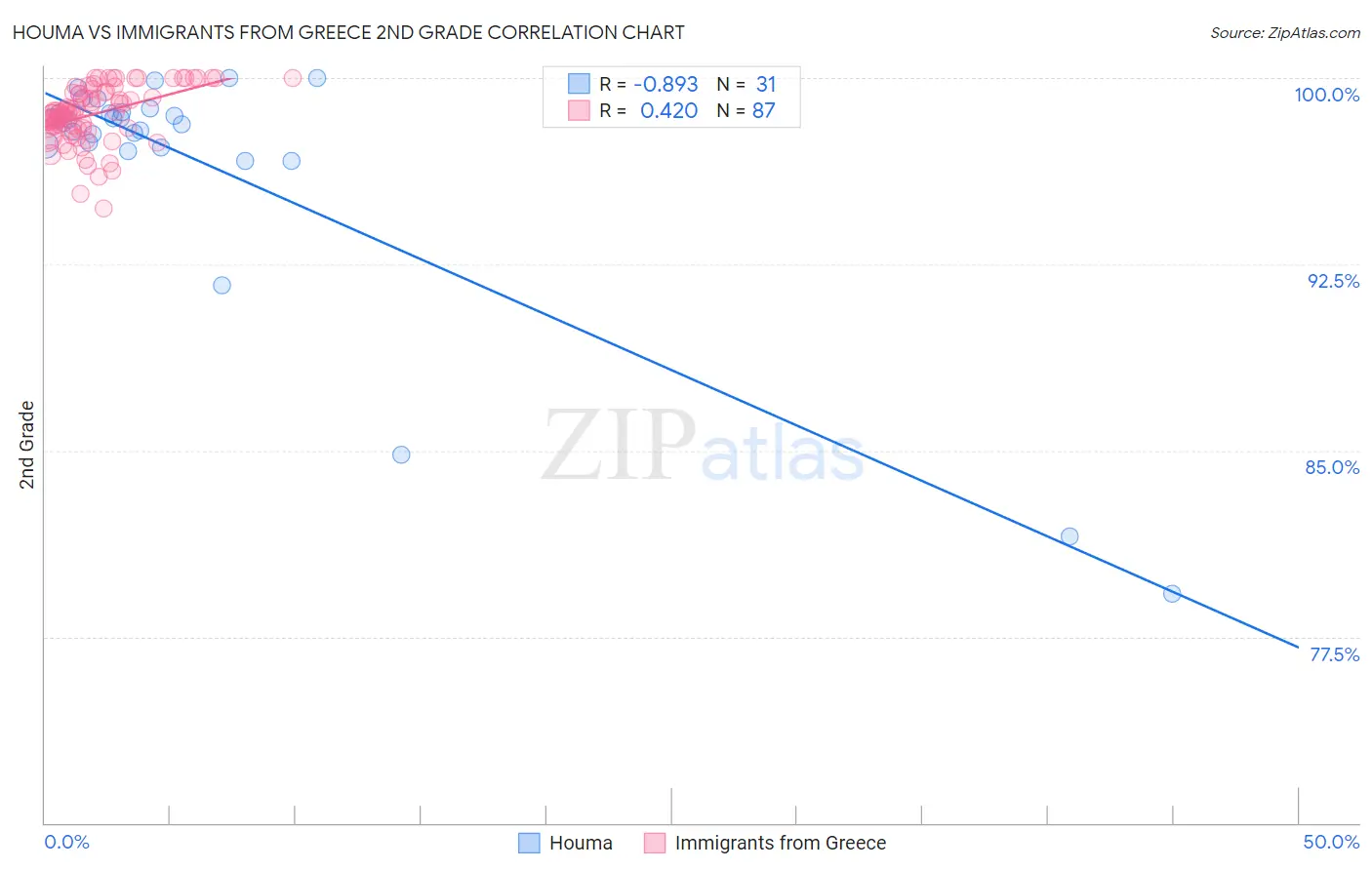 Houma vs Immigrants from Greece 2nd Grade Correlation Chart