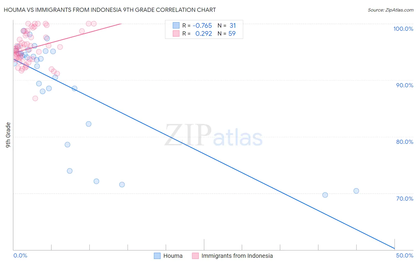 Houma vs Immigrants from Indonesia 9th Grade Correlation Chart