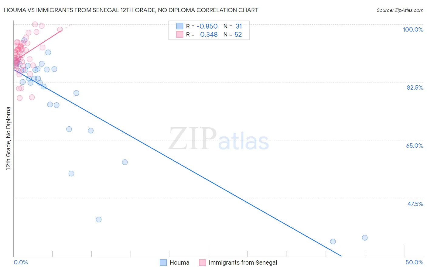 Houma vs Immigrants from Senegal 12th Grade, No Diploma Correlation Chart
