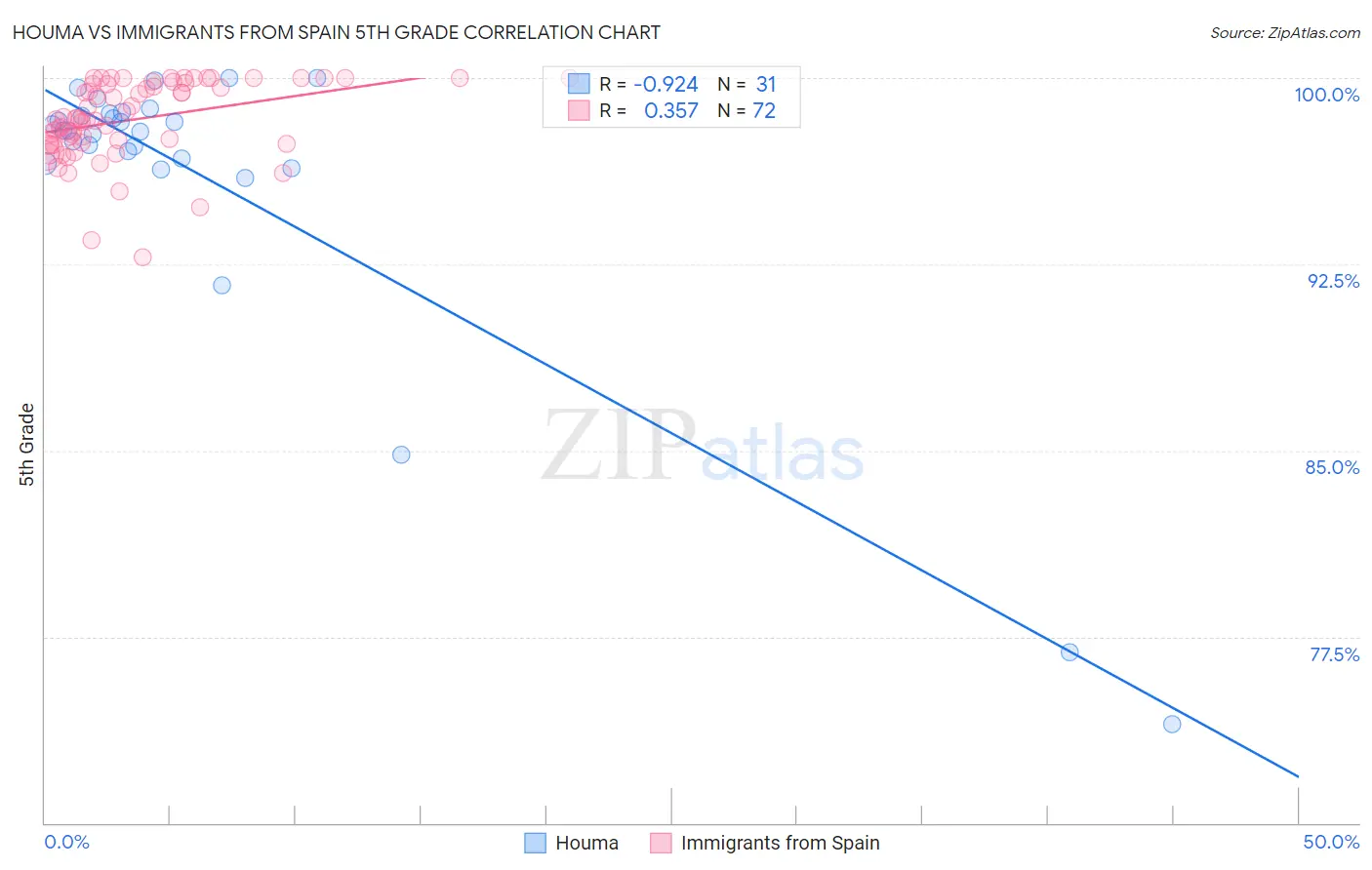 Houma vs Immigrants from Spain 5th Grade Correlation Chart