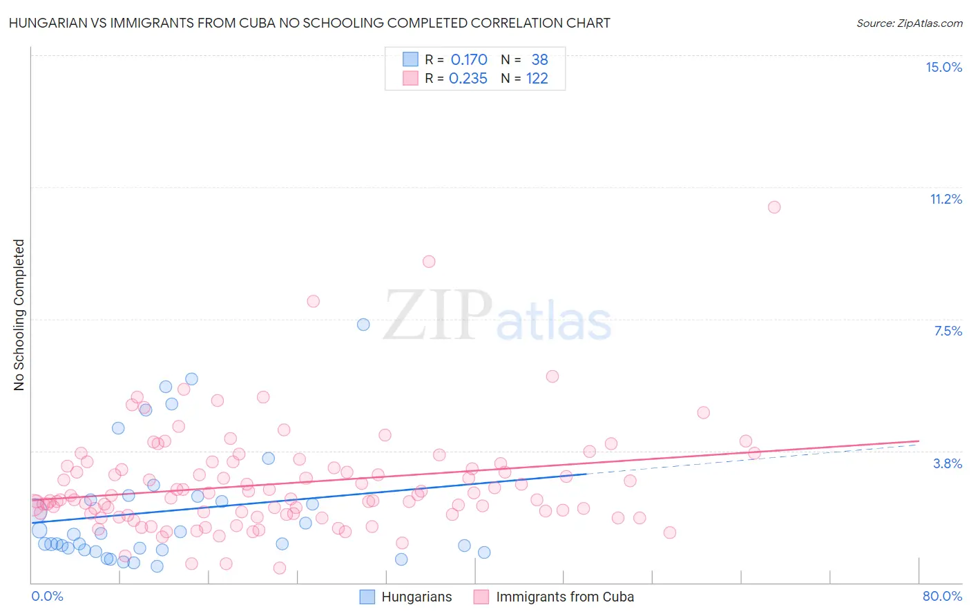 Hungarian vs Immigrants from Cuba No Schooling Completed Correlation Chart