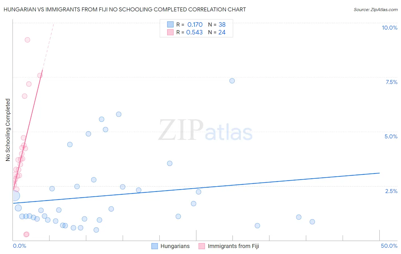 Hungarian vs Immigrants from Fiji No Schooling Completed Correlation Chart