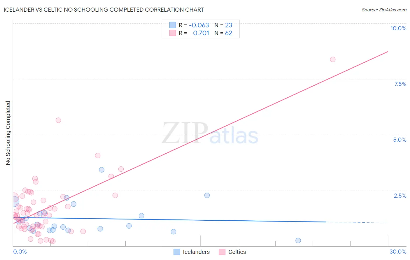Icelander vs Celtic No Schooling Completed Correlation Chart