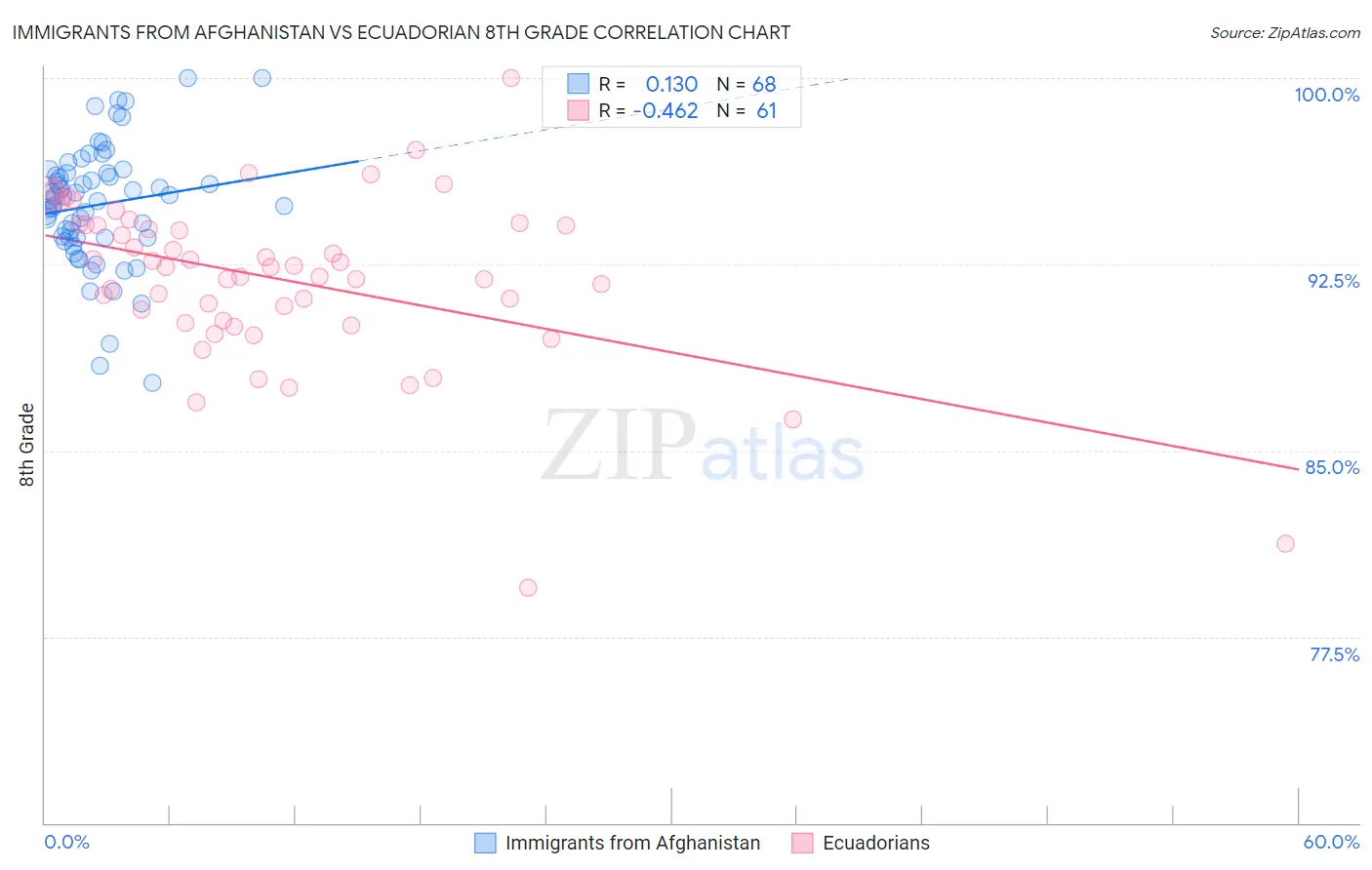 Immigrants from Afghanistan vs Ecuadorian 8th Grade Correlation Chart