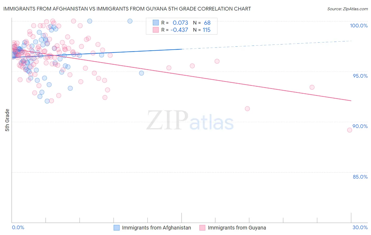 Immigrants from Afghanistan vs Immigrants from Guyana 5th Grade Correlation Chart