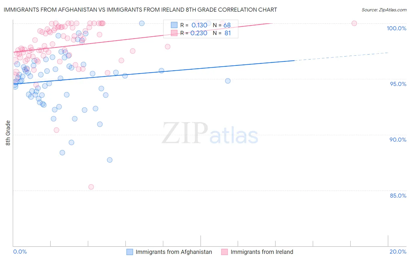 Immigrants from Afghanistan vs Immigrants from Ireland 8th Grade Correlation Chart