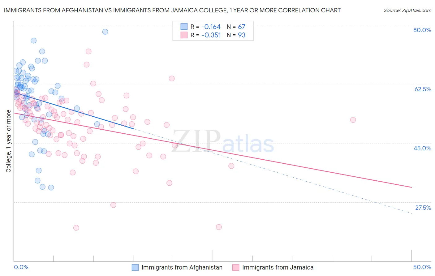 Immigrants from Afghanistan vs Immigrants from Jamaica College, 1 year or more Correlation Chart