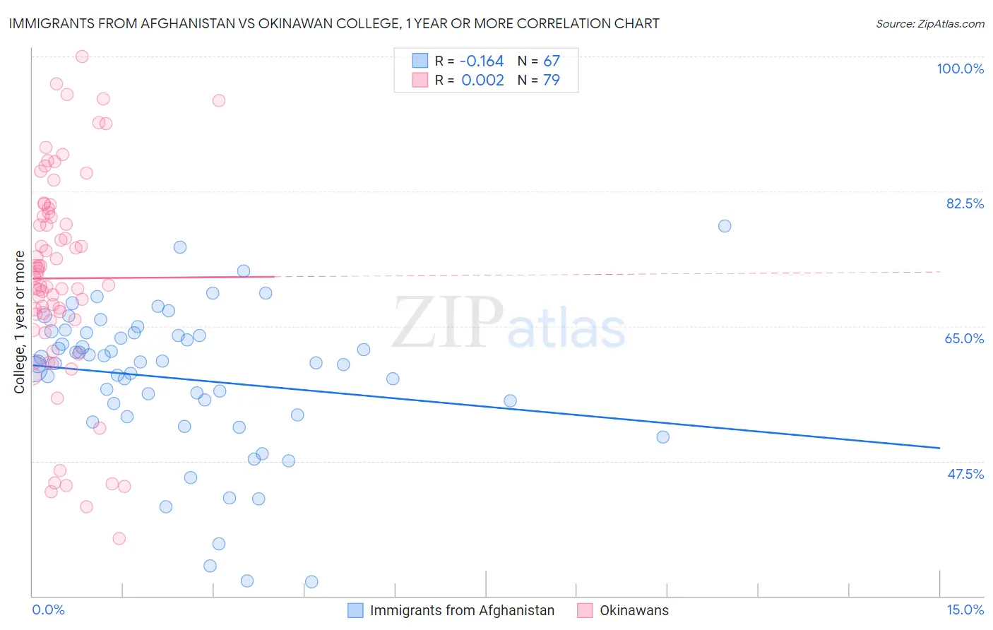 Immigrants from Afghanistan vs Okinawan College, 1 year or more Correlation Chart