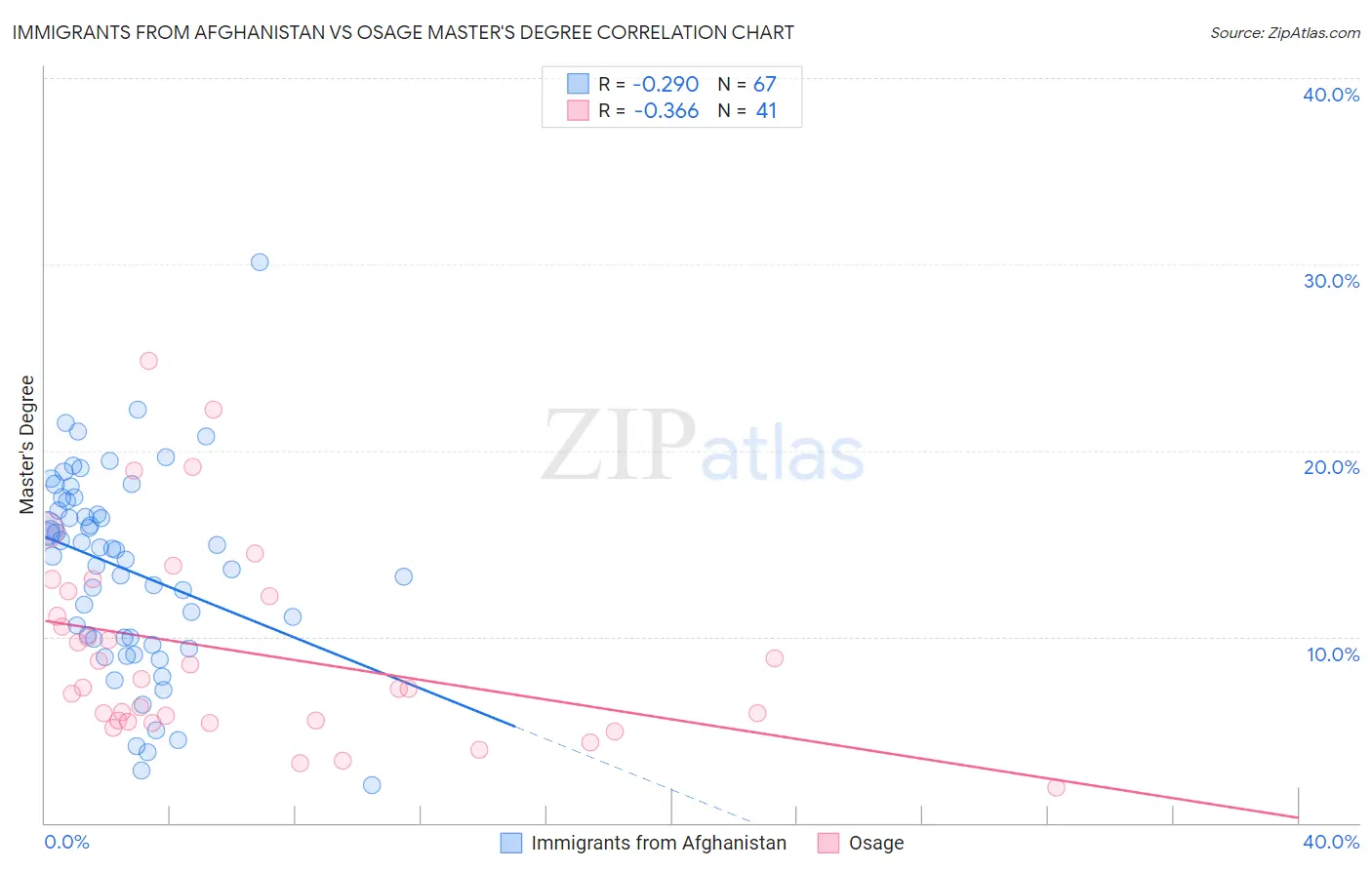 Immigrants from Afghanistan vs Osage Master's Degree Correlation Chart
