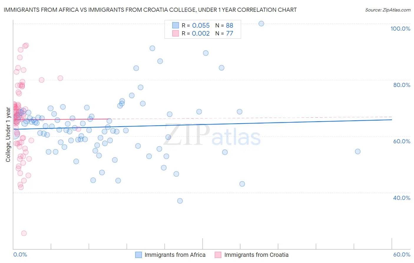Immigrants from Africa vs Immigrants from Croatia College, Under 1 year Correlation Chart