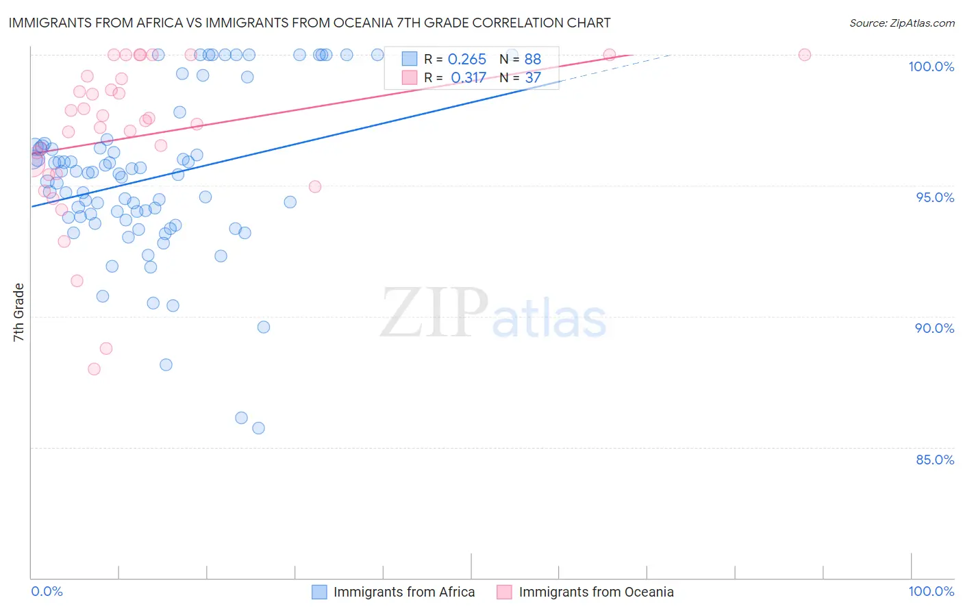 Immigrants from Africa vs Immigrants from Oceania 7th Grade Correlation Chart