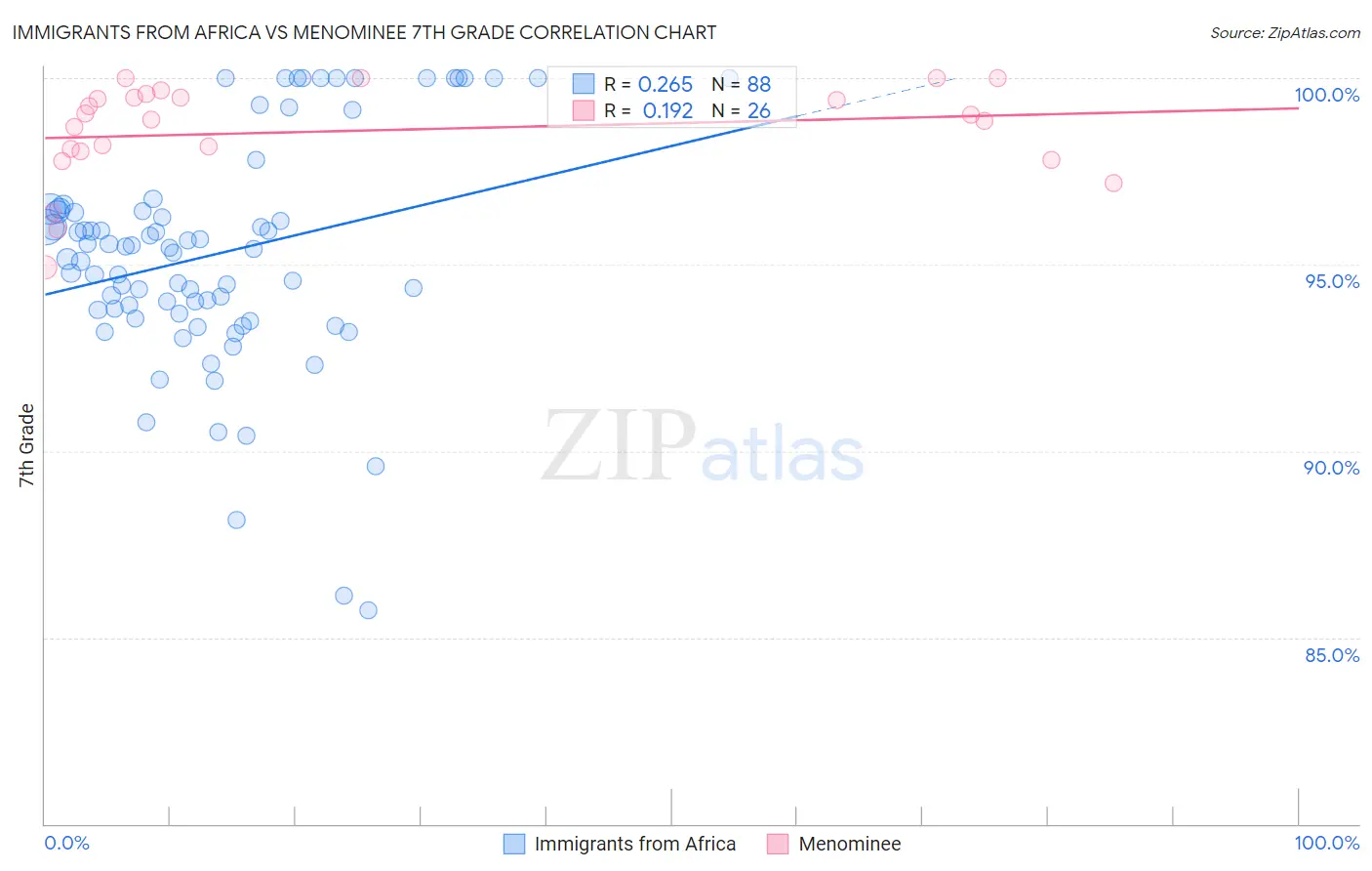 Immigrants from Africa vs Menominee 7th Grade Correlation Chart