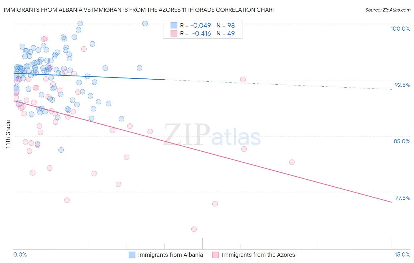 Immigrants from Albania vs Immigrants from the Azores 11th Grade Correlation Chart