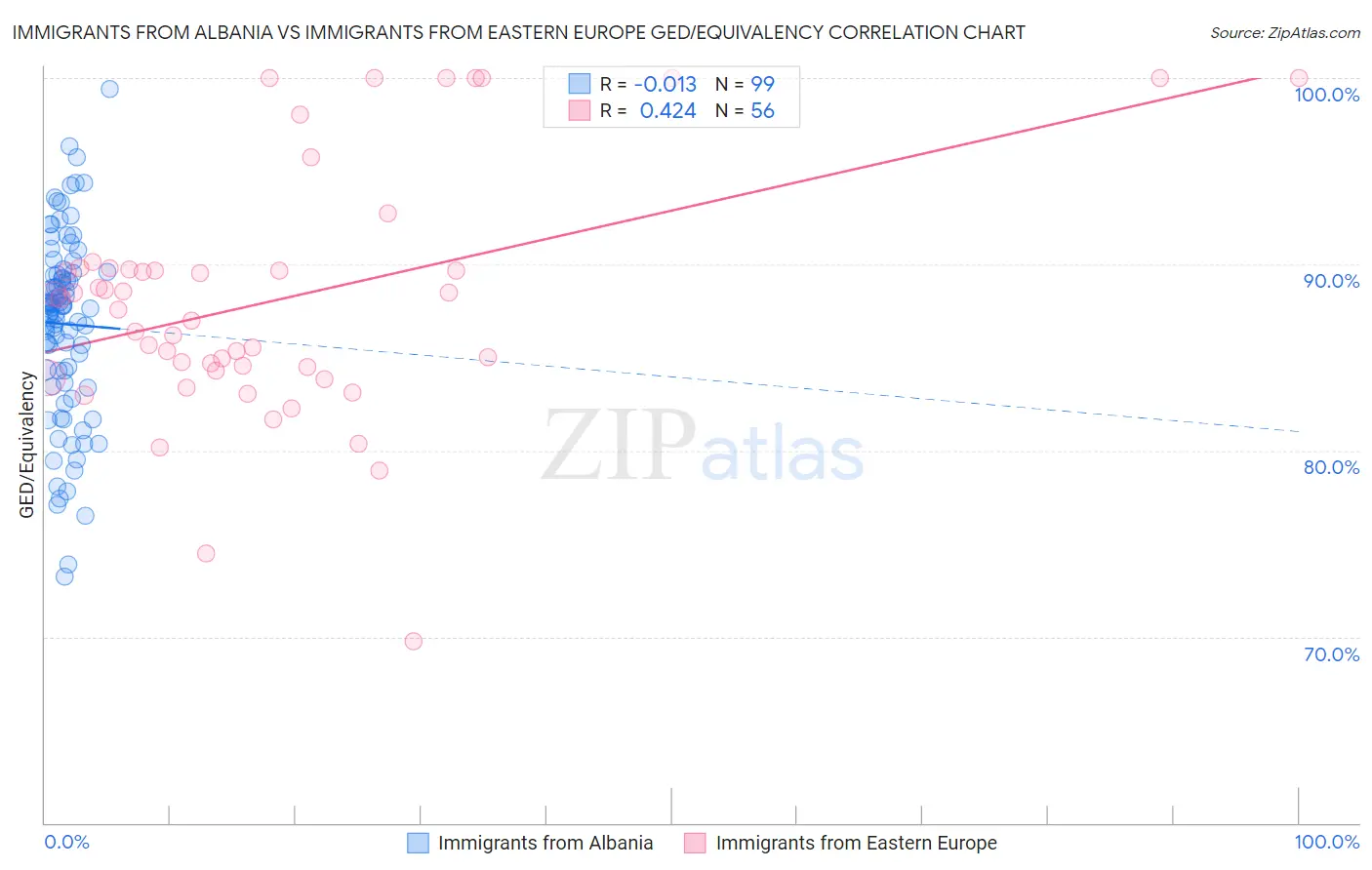 Immigrants from Albania vs Immigrants from Eastern Europe GED/Equivalency Correlation Chart