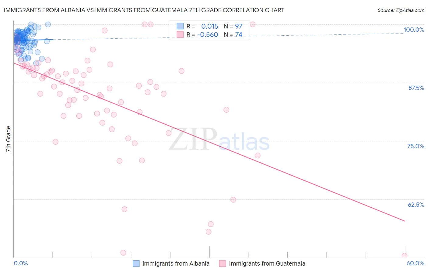 Immigrants from Albania vs Immigrants from Guatemala 7th Grade Correlation Chart