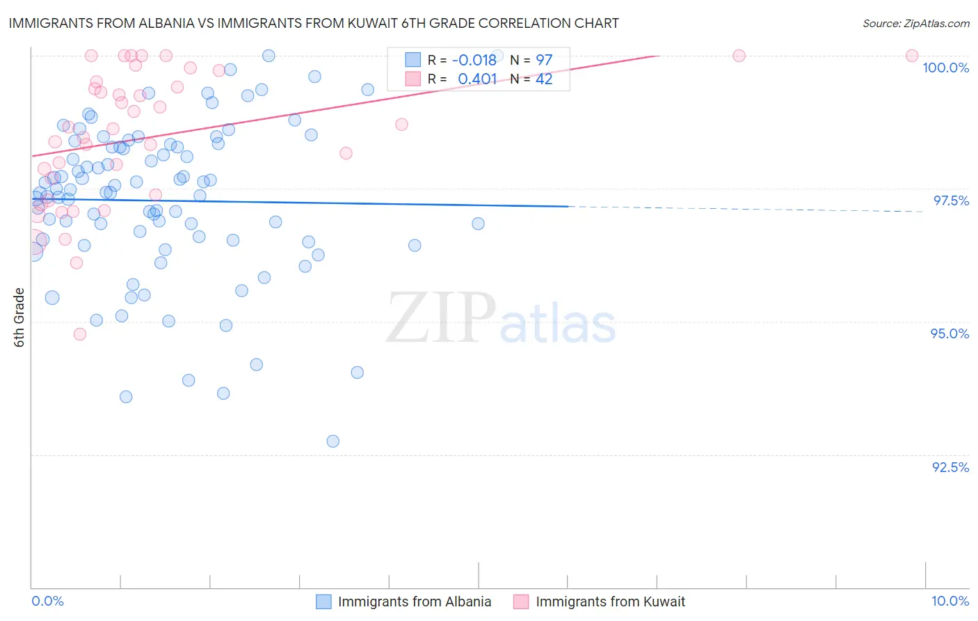 Immigrants from Albania vs Immigrants from Kuwait 6th Grade Correlation Chart