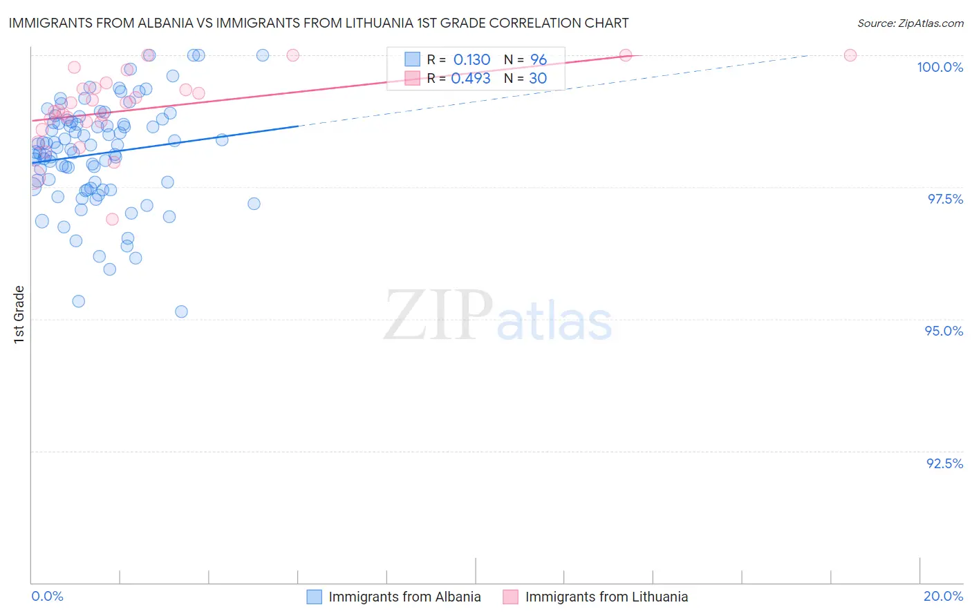 Immigrants from Albania vs Immigrants from Lithuania 1st Grade Correlation Chart