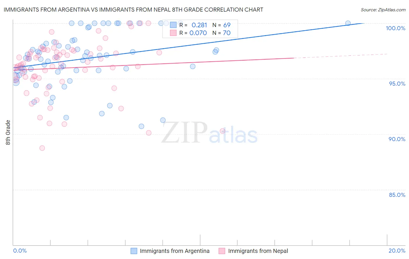 Immigrants from Argentina vs Immigrants from Nepal 8th Grade Correlation Chart