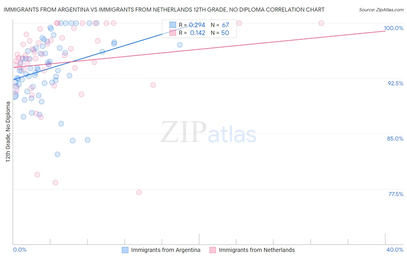 Immigrants from Argentina vs Immigrants from Netherlands 12th Grade, No Diploma Correlation Chart