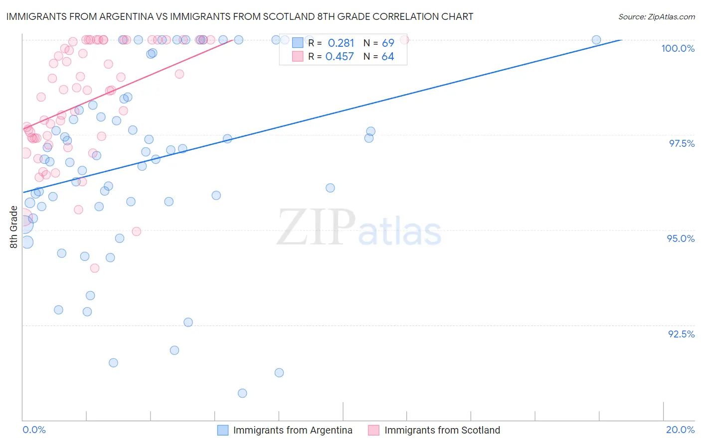 Immigrants from Argentina vs Immigrants from Scotland 8th Grade Correlation Chart