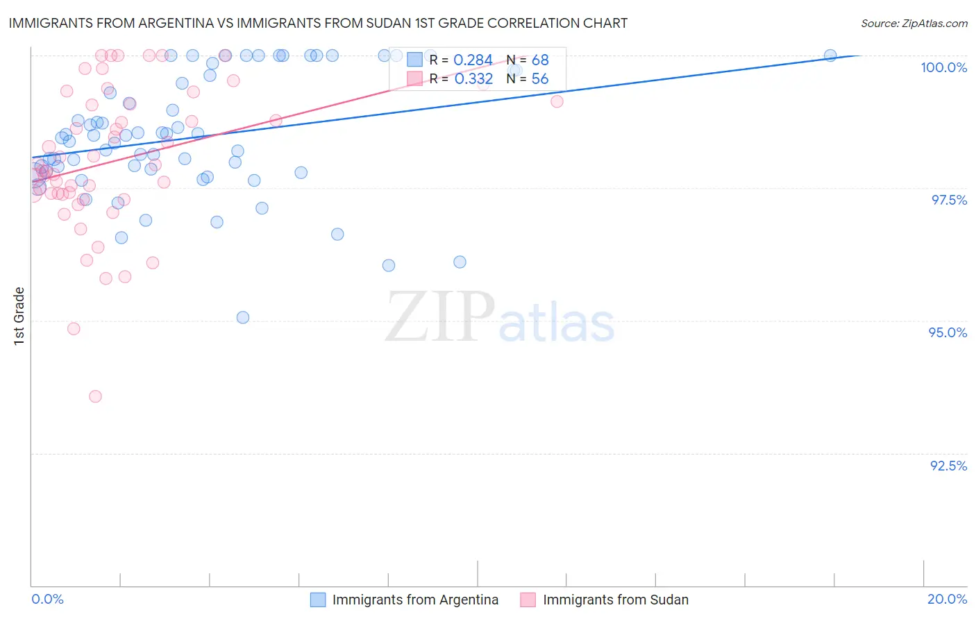 Immigrants from Argentina vs Immigrants from Sudan 1st Grade Correlation Chart