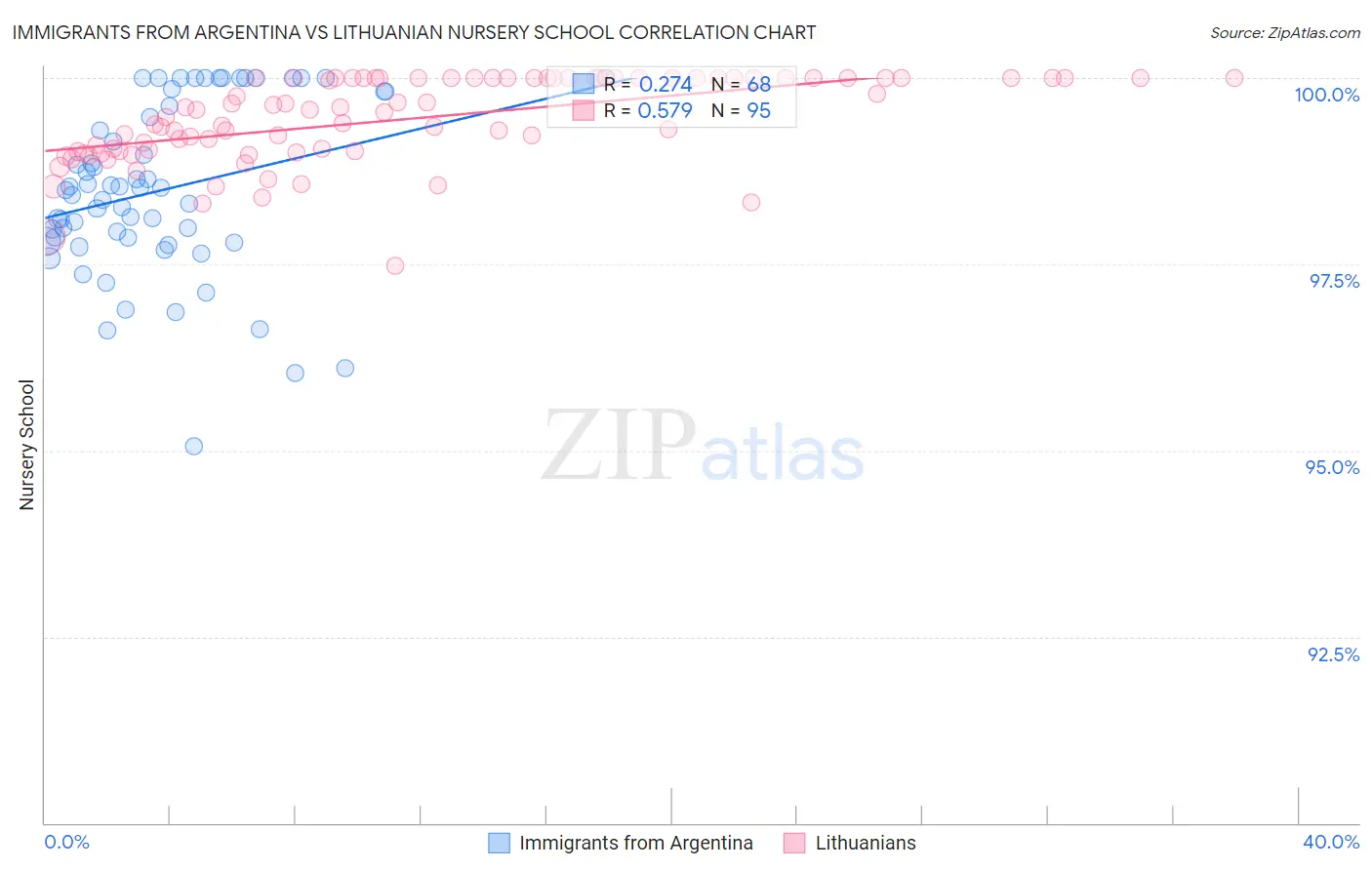 Immigrants from Argentina vs Lithuanian Nursery School Correlation Chart