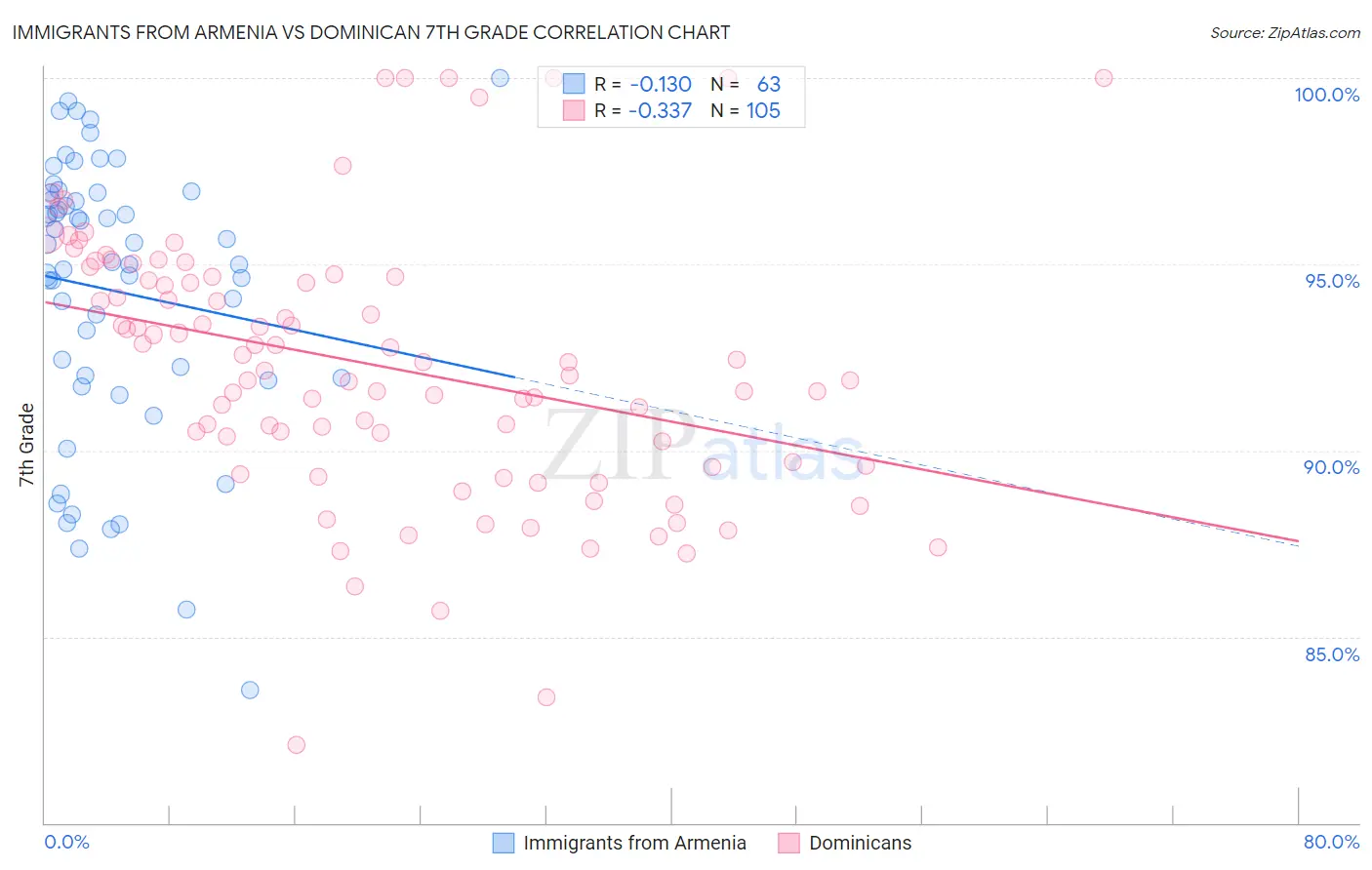 Immigrants from Armenia vs Dominican 7th Grade Correlation Chart