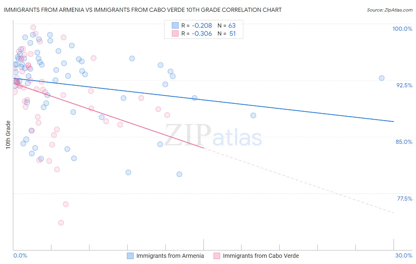Immigrants from Armenia vs Immigrants from Cabo Verde 10th Grade Correlation Chart