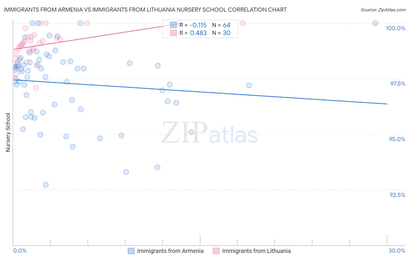 Immigrants from Armenia vs Immigrants from Lithuania Nursery School Correlation Chart