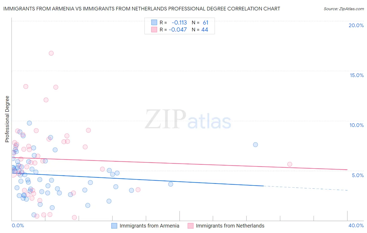 Immigrants from Armenia vs Immigrants from Netherlands Professional Degree Correlation Chart