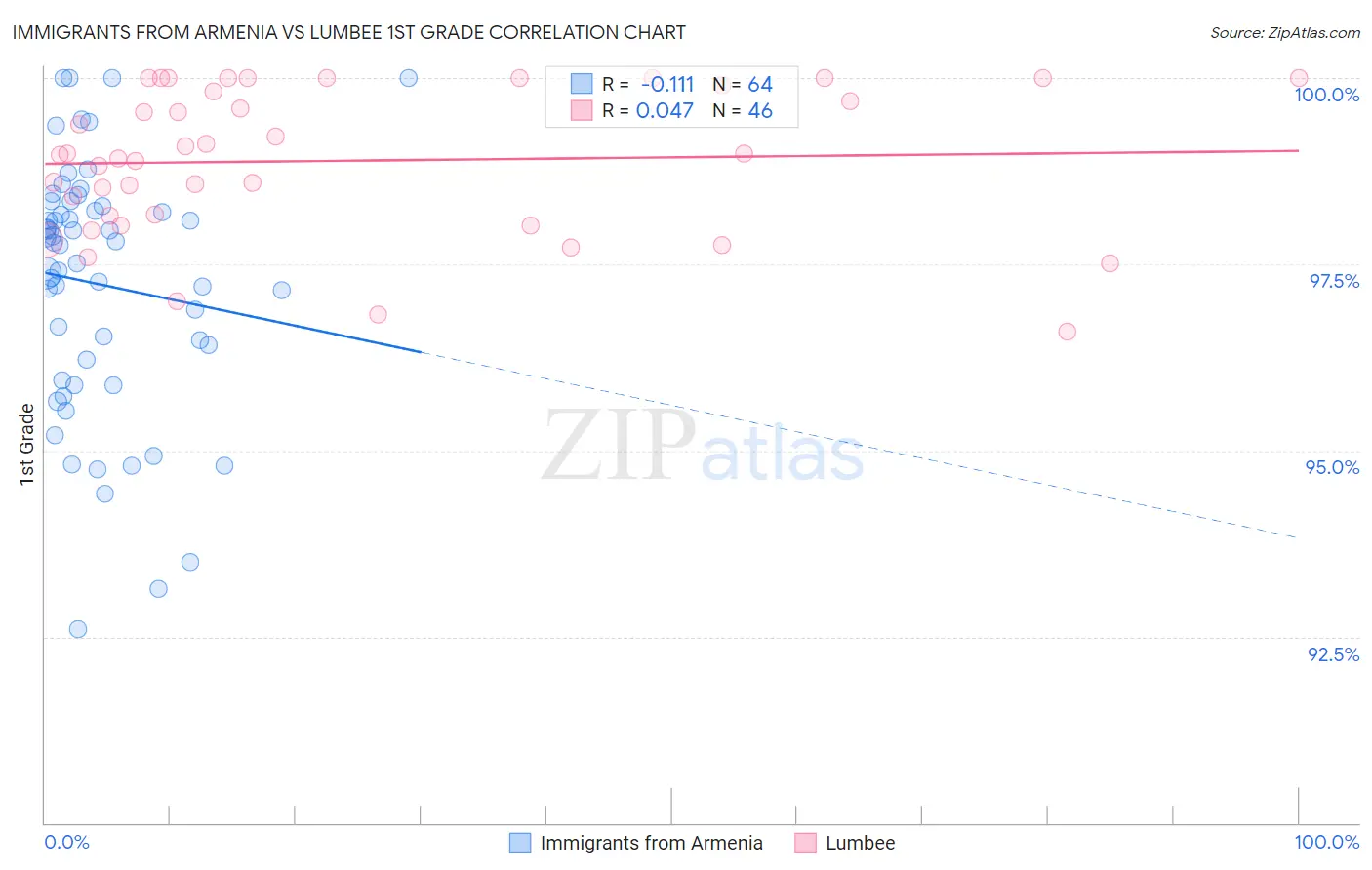 Immigrants from Armenia vs Lumbee 1st Grade Correlation Chart